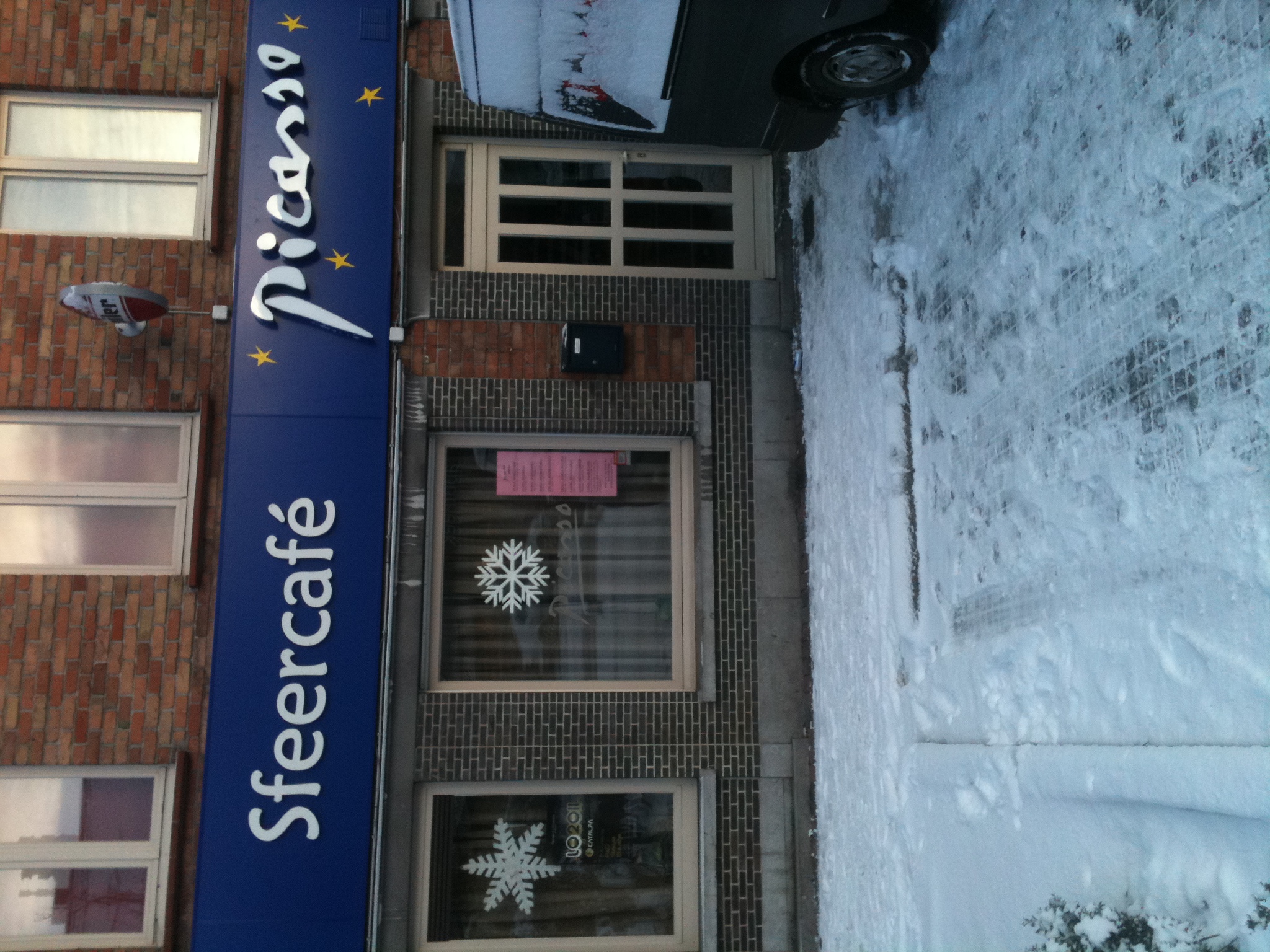 De Picasso is een café zoals een café moet zijn. Rumoerig, gezellig, druk. Onmiddellijk babbel, onberispelijk getapte pinten, en toen men hoorde dat ik er nog maar net woonde kreeg ik een babbel en een hand van de sympathieke uitbaters, een jong stel met grote horeca verwachtingen en dito werklust. En niet eens ‘gemaakt’, want de man groet me nog steeds als ik voorbij zijn etablissement kuier. Ik ben er sindsdien niet meer geweest, omdat – in weerwil van de aspiraties – ik niet zo graag alleen op café ga in Lochristi. Dat heeft iets zielig. Vind ik.